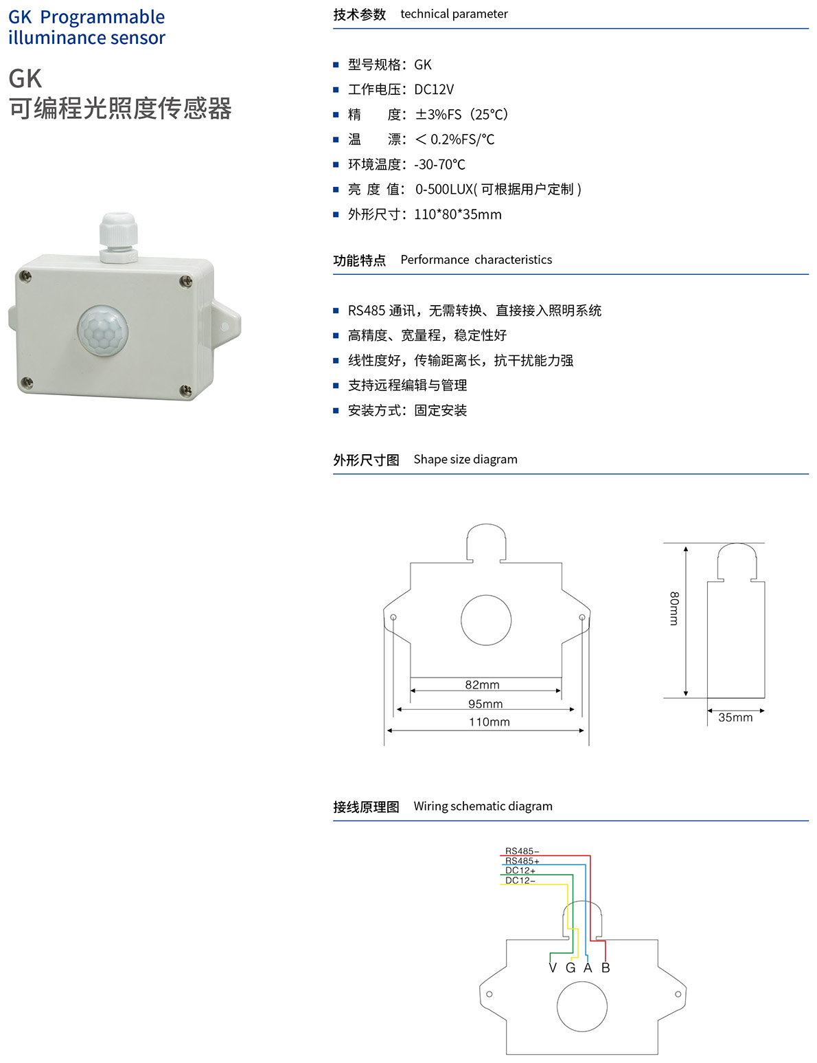 GK可编程光照度传感器