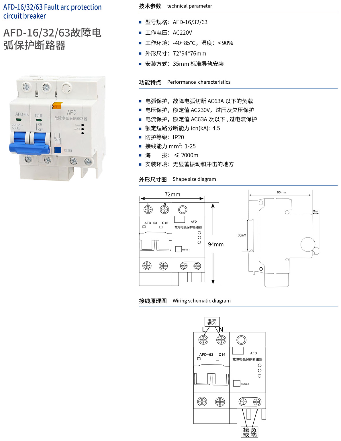 AFD-16/32/63故障电弧保护断路器